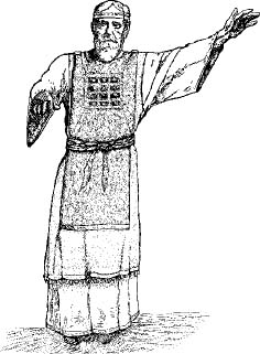 59. Această emblemă a Legii (pieptarul) era printre cele mai frumoase dintre veșmintele Marelui Preot. El era făcut din aceleași materiale ca și efodul. Avea în el, fixate în aur, douăsprezece pietre prețioase, pe care erau gravate numele celor douăsprezece seminții ale lui Israel. El era legat în dreptul inimii ca să arate prin aceasta că-i era prețios. Ca și „o platoșă a dreptății” acesta îi acoperea inima. Ceea ce condamna orice imperfecțiune era plăcerea lui „Desfătarea mea este să fac plăcerea Ta, o Dumnezeul meu, și Legea Ta este înăuntrul inimii mele” (Ps. 40:8 Cornilescu rev.).